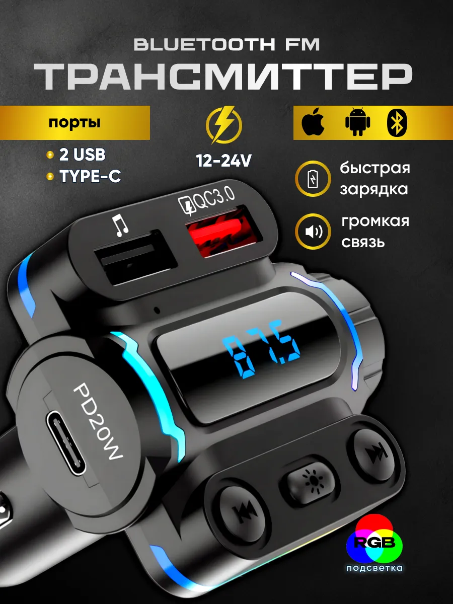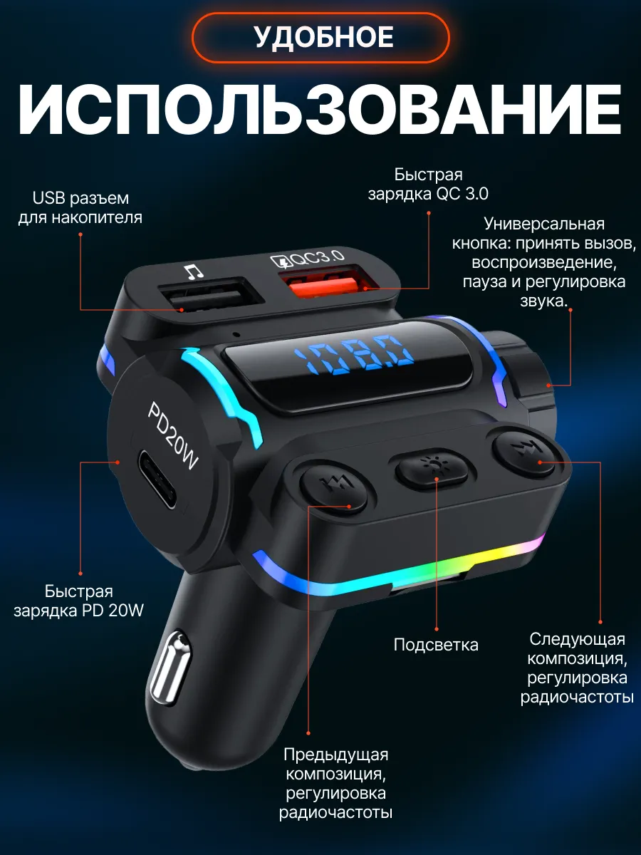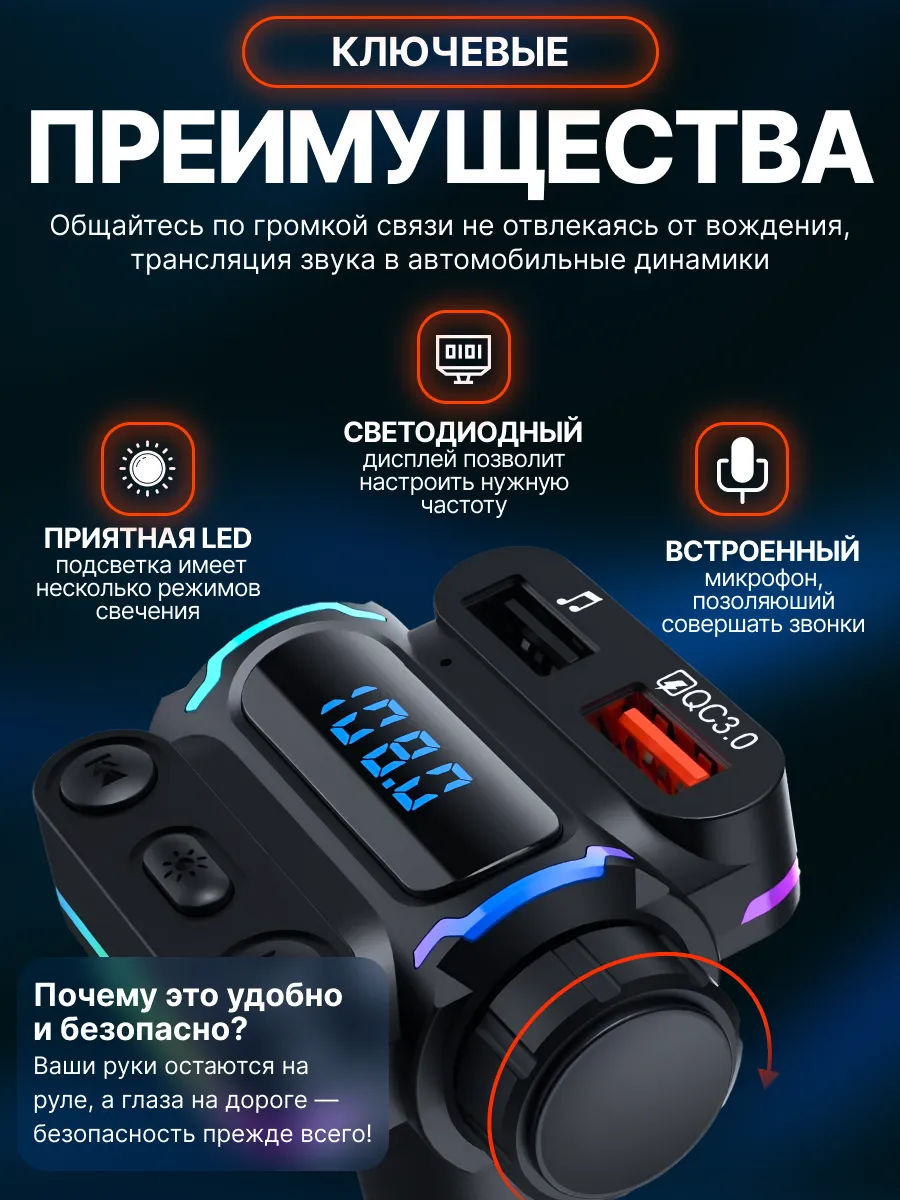 Автомобильный FM модулятор с Bluetooth — это простое и гениальное решение для комфорта в дороге. Забудьте о неудобных проводах и устаревших способах подключения. Всего одно компактное устройство, подключаемое через прикуриватель, превращает вашу штатную магнитолу в современный медиацентр. Наслаждайтесь плейлистами со смартфона, слушайте аудиокниги и безопасно принимайте звонки, не отрывая рук от руля — благодаря четкой и стабильной передаче звука через FM-частоту.