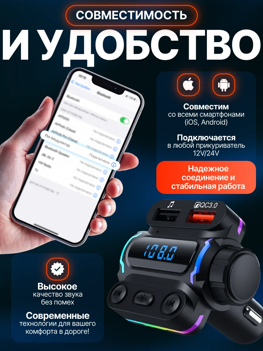 Приобрёл для семейного использования. Жена постоянно слушает музыку с телефона, а я люблю аудиокниги в дороге. С этим модулятором всё стало просто: сел в машину — подключился автоматически. Звук качественный, басы передаются хорошо. Прием звонков в режиме громкой связи работает четко. Очень доволен покупкой, вещь действительно полезная и надежная.