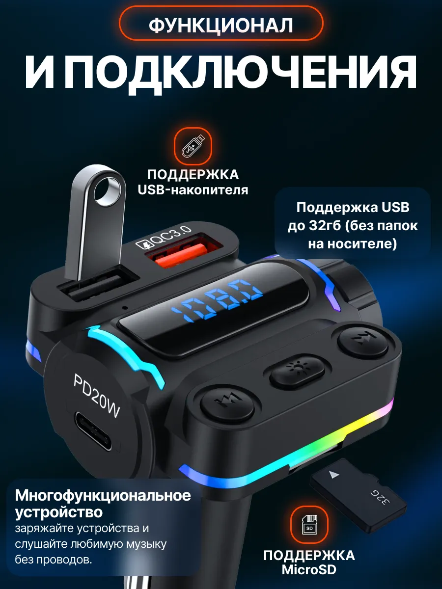 Автомобильный FM модулятор с Bluetooth — это простое и гениальное решение для комфорта в дороге. Забудьте о неудобных проводах и устаревших способах подключения. Всего одно компактное устройство, подключаемое через прикуриватель, превращает вашу штатную магнитолу в современный медиацентр. Наслаждайтесь плейлистами со смартфона, слушайте аудиокниги и безопасно принимайте звонки, не отрывая рук от руля — благодаря четкой и стабильной передаче звука через FM-частоту.